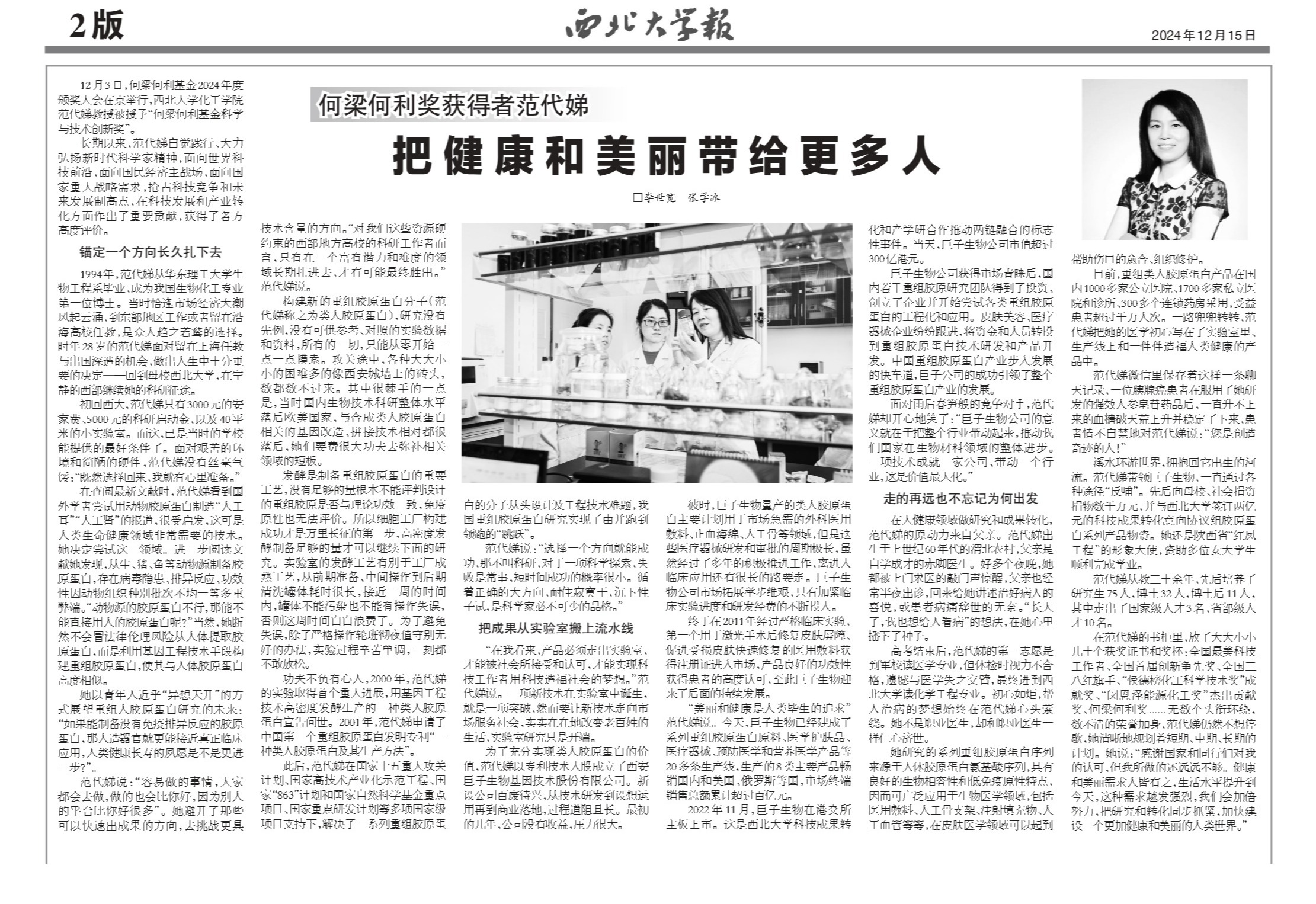 12月3日,何梁何利基金2024年度颁奖大会在京举行,金沙2004路线js5化工学院范代娣教授被授予“何梁何利基金科学与技术创新奖”。长期以来,范代娣自觉践行、大力弘扬新时代科学家精神,面向世界科技前沿,面向国民经济主战场,面向国家重大战略需求,抢占科技竞争和未来发展制高点,在科技发展和产业转化方面作出了重要贡献,获得了各方高度评价。锚定一个方向长久扎下去1994年,范代娣从华东理工大学生物工程系毕业,成为我国生物化工...