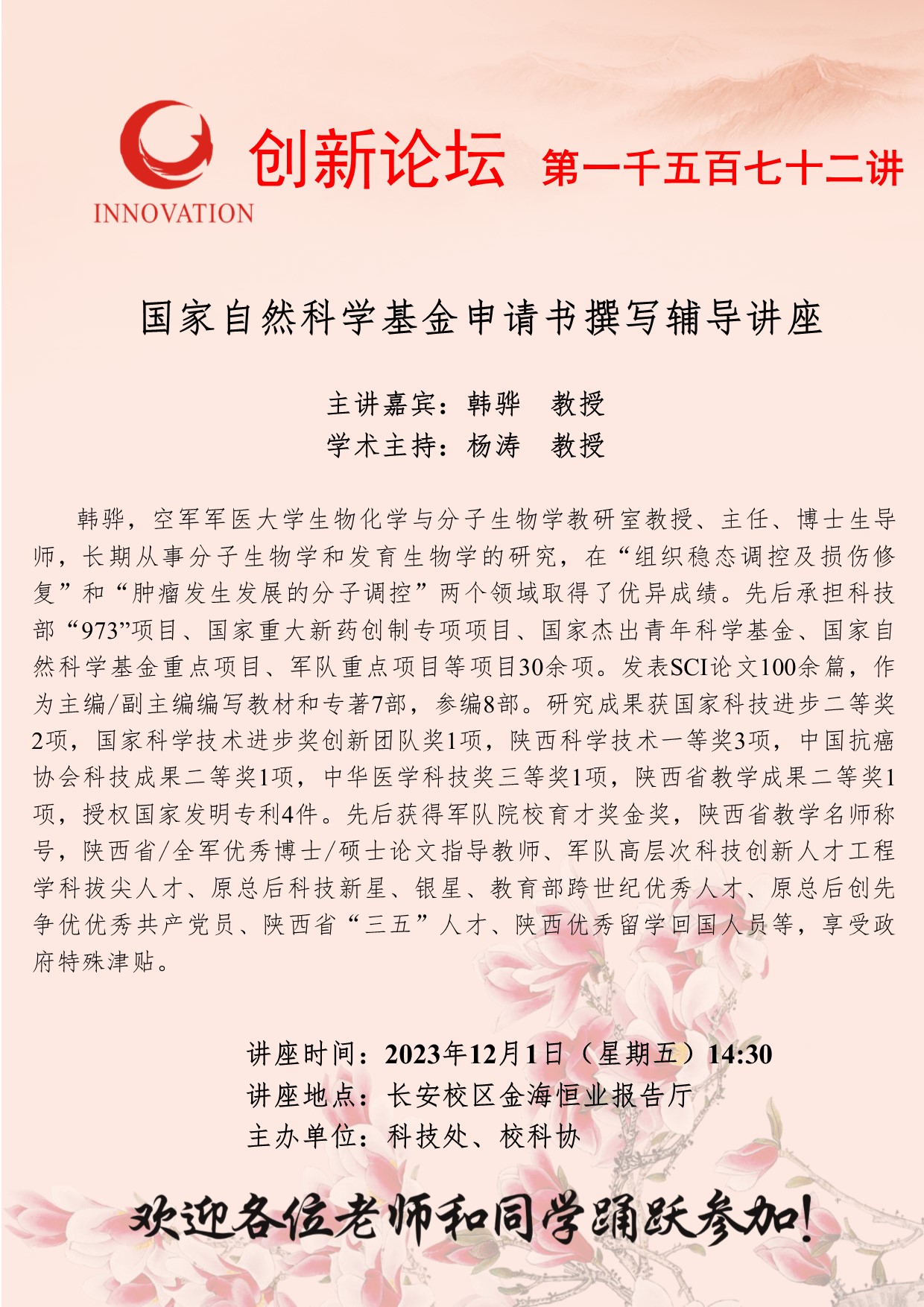 金沙2004路线js5创新论坛第一千五百七十二讲:国家自然科学基金申请书撰写辅导讲座