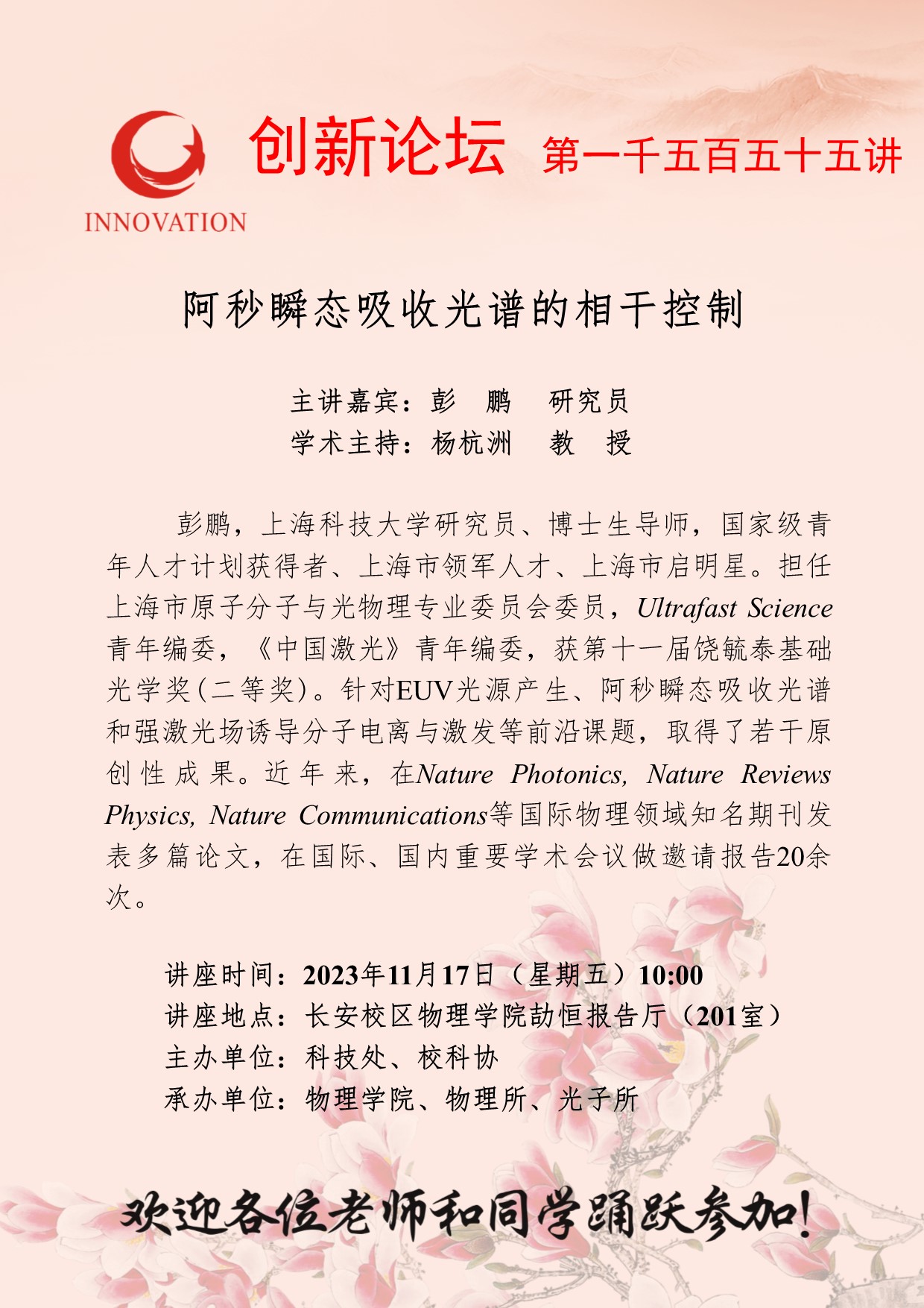 金沙2004路线js5创新论坛第一千五百五十五讲:阿秒瞬态吸收光谱的相干控制