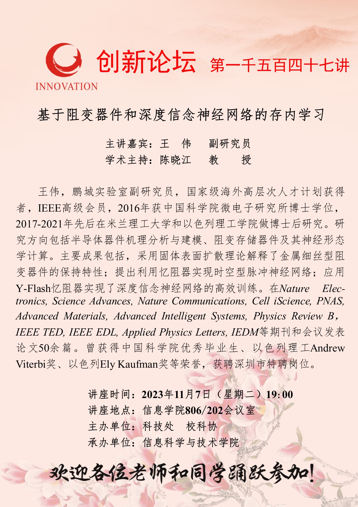 金沙2004路线js5创新论坛第一千五百四十七讲:基于阻变器件和深度信念神经网络的存内学习