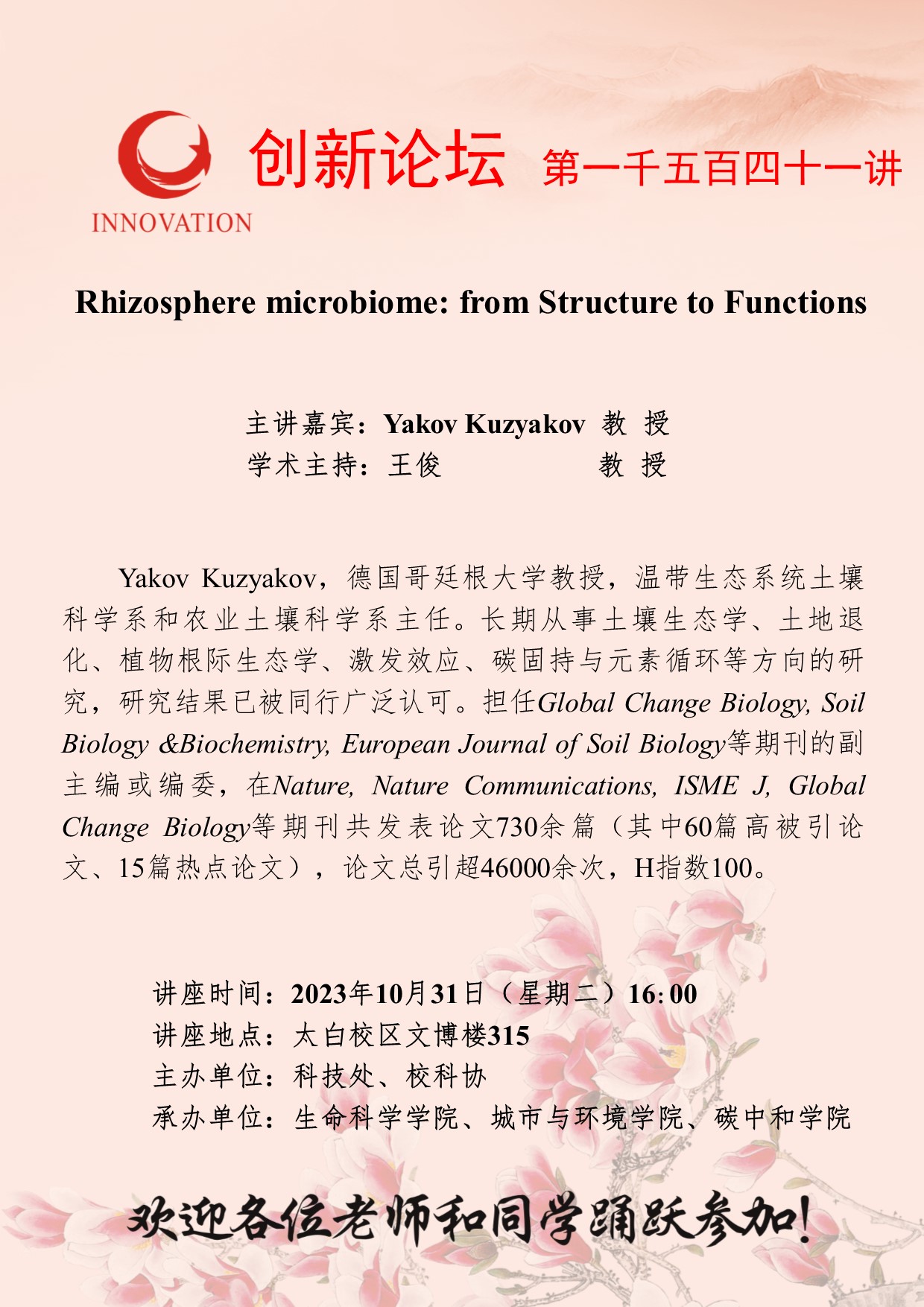 金沙2004路线js5创新论坛第一千五百四十一讲:Rhizosphere microbiome: from Structure to Functions