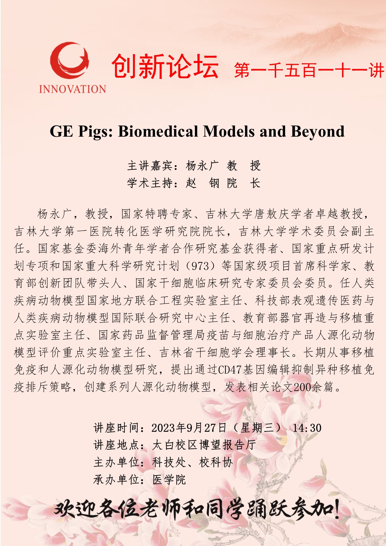 金沙2004路线js5创新论坛第一千五百一十一讲:GE Pigs: Biomedical Models and Beyond