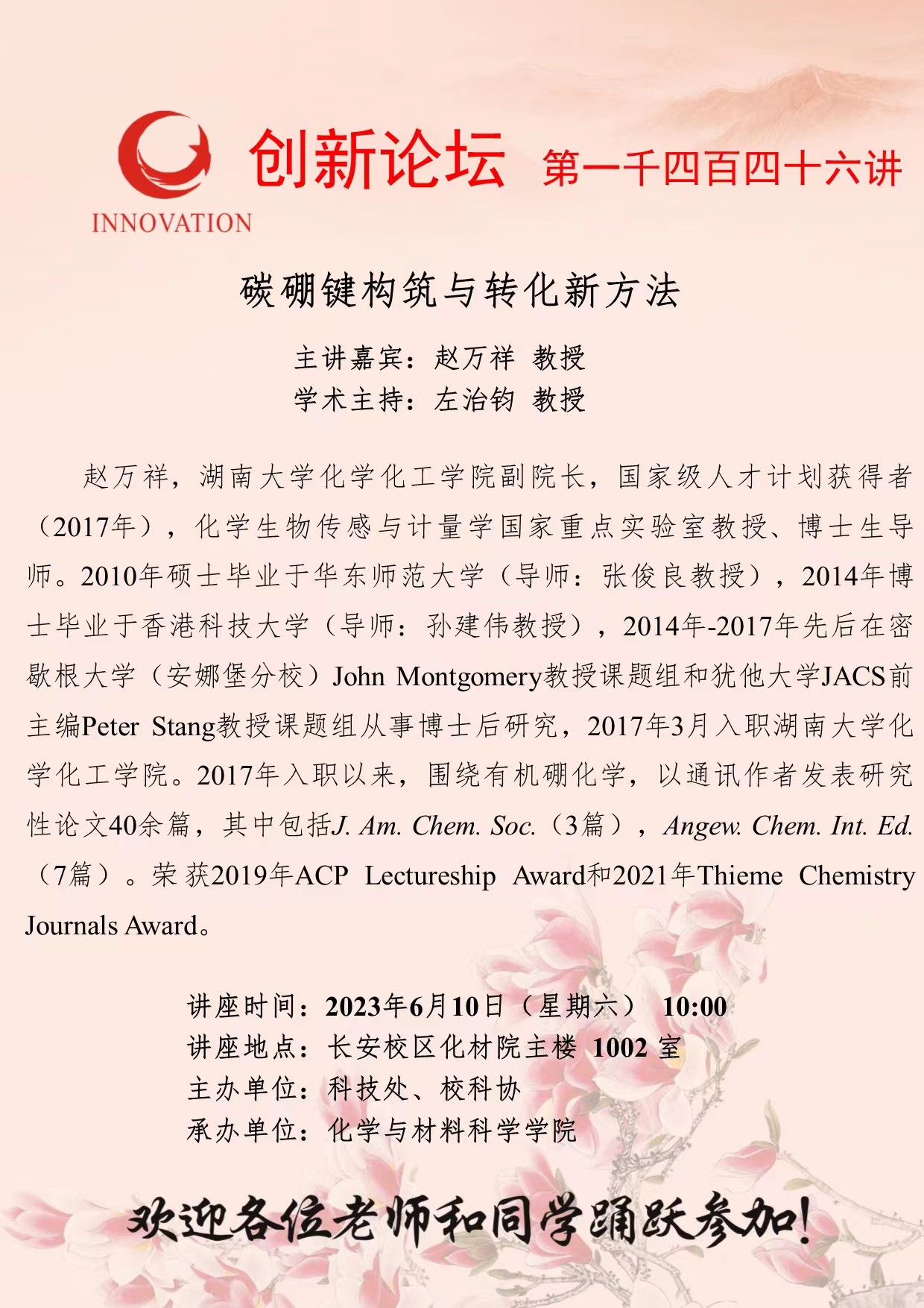 金沙2004路线js5创新论坛第一千四百四十六讲:碳硼键构筑与转化新方法
