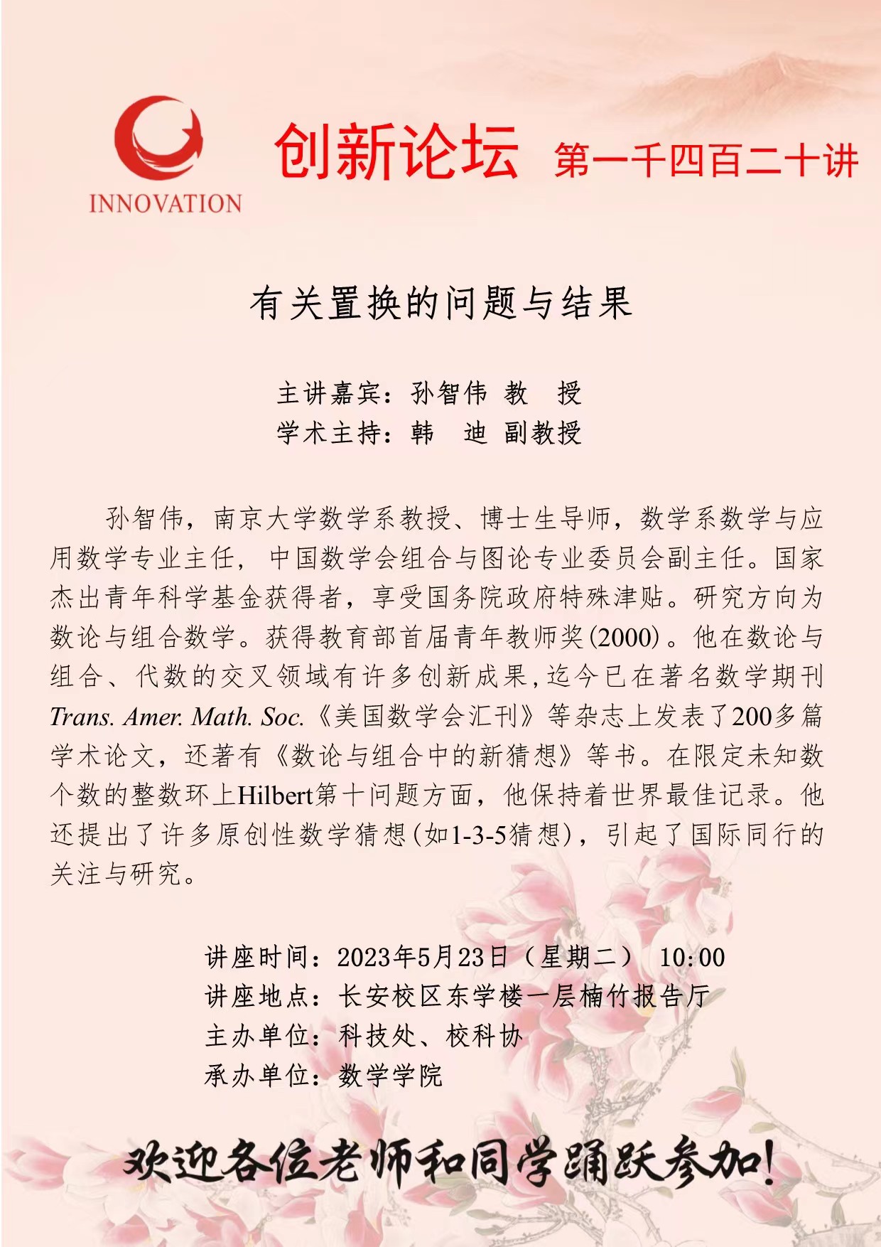 金沙2004路线js5创新论坛第一千四百二十讲:有关置换的问题与结果