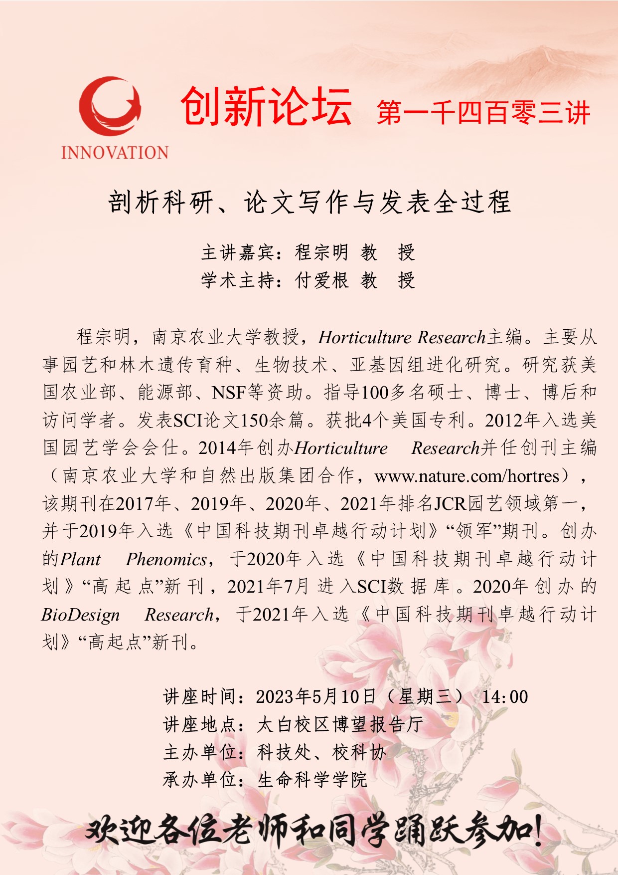 金沙2004路线js5创新论坛第一千四百零三讲:剖析科研、论文写作与发表全过程