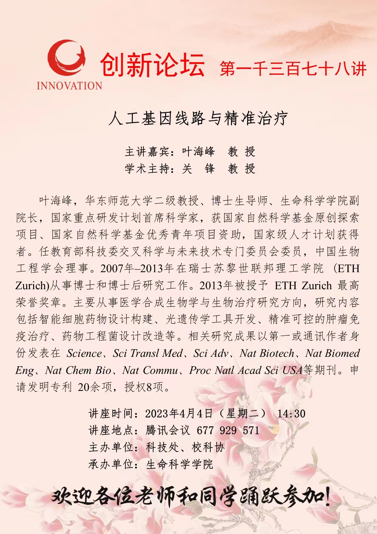 金沙2004路线js5创新论坛第一千三百七十八讲:人工基因线路与精准治疗
