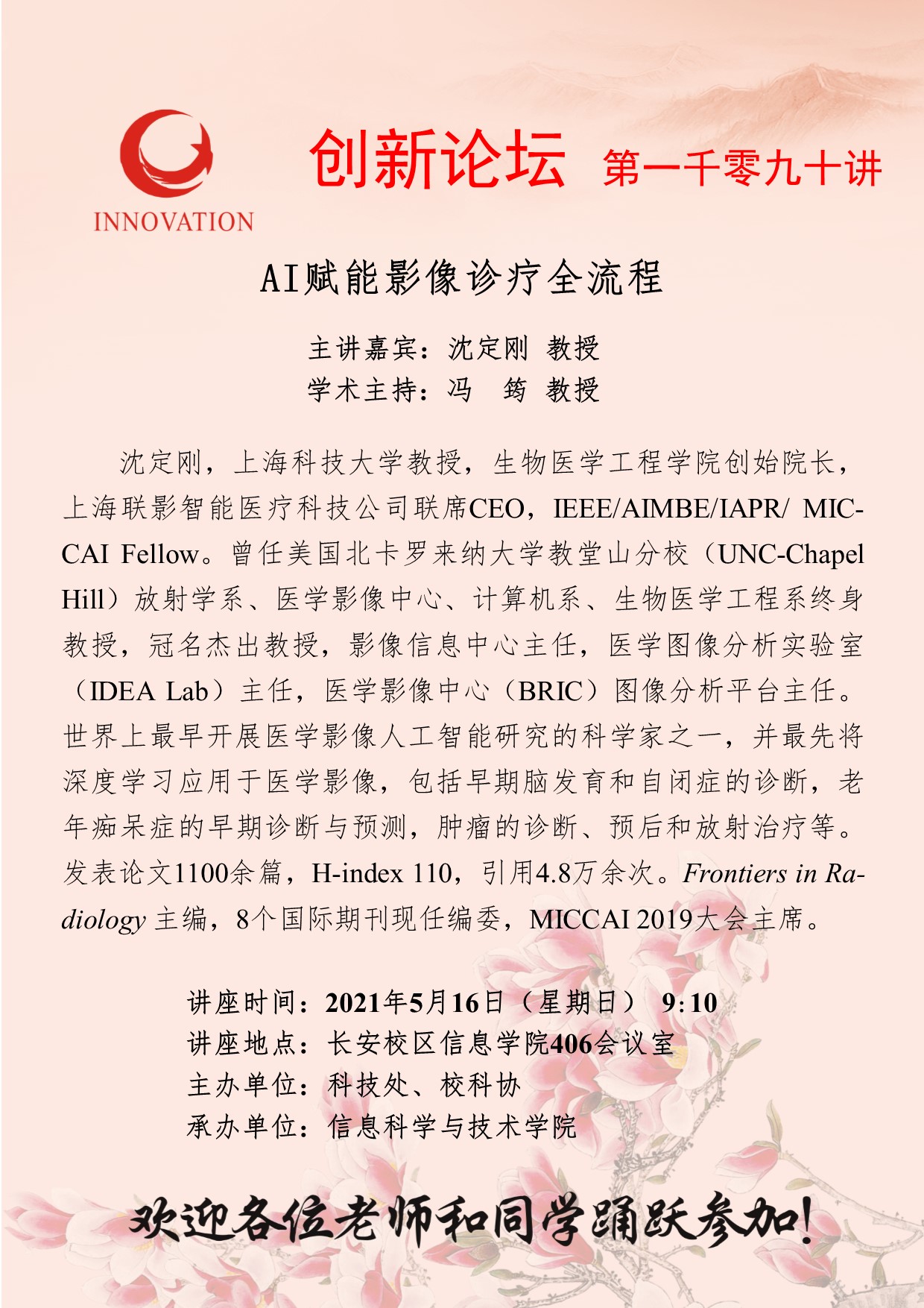 金沙2004路线js5创新论坛第一千零九十讲:AI赋能影像诊疗全流程