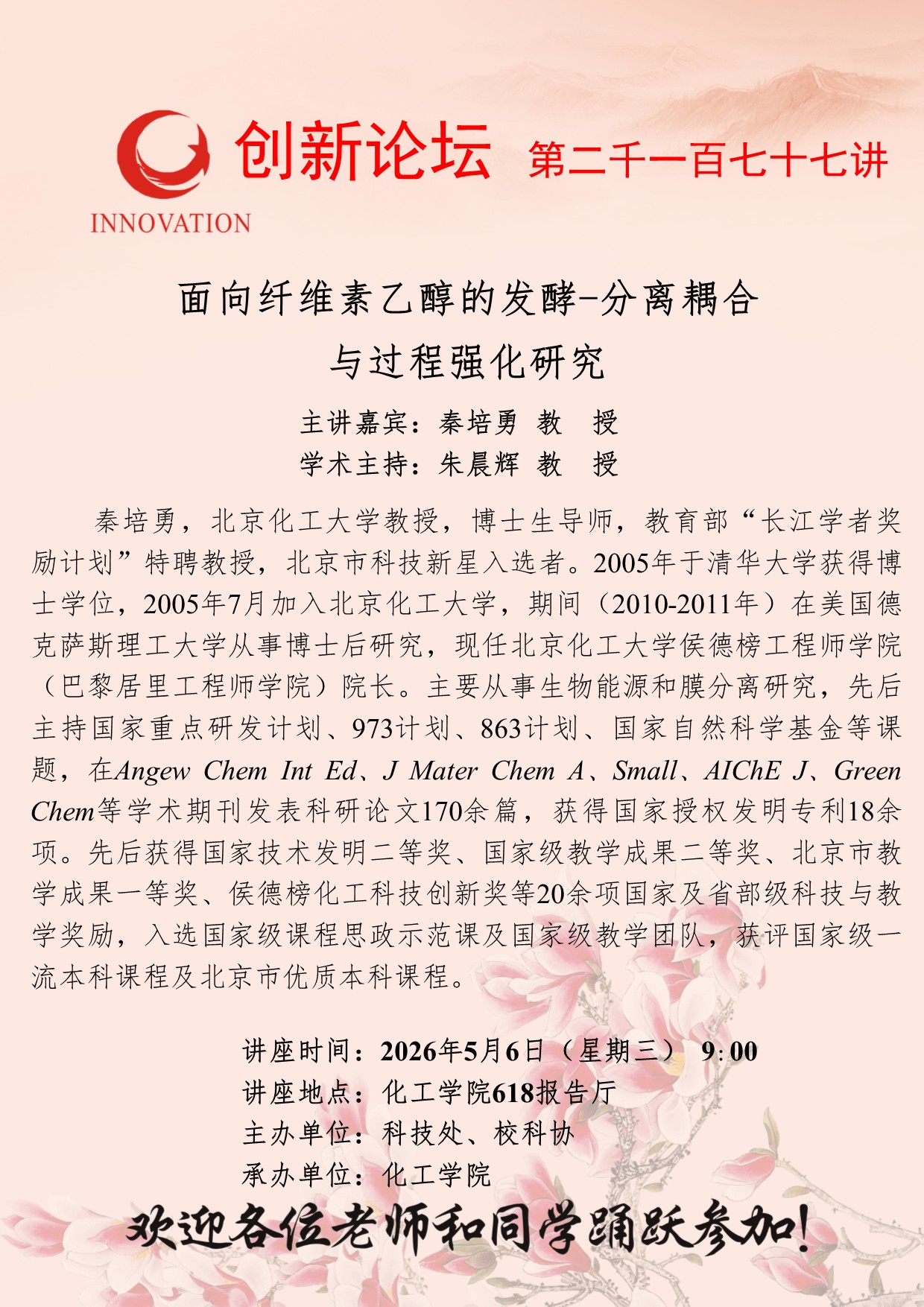 金沙2004路线js5创新论坛第二千一百七十七讲:面向纤维素乙醇的发酵-分离耦合与过程强化研究