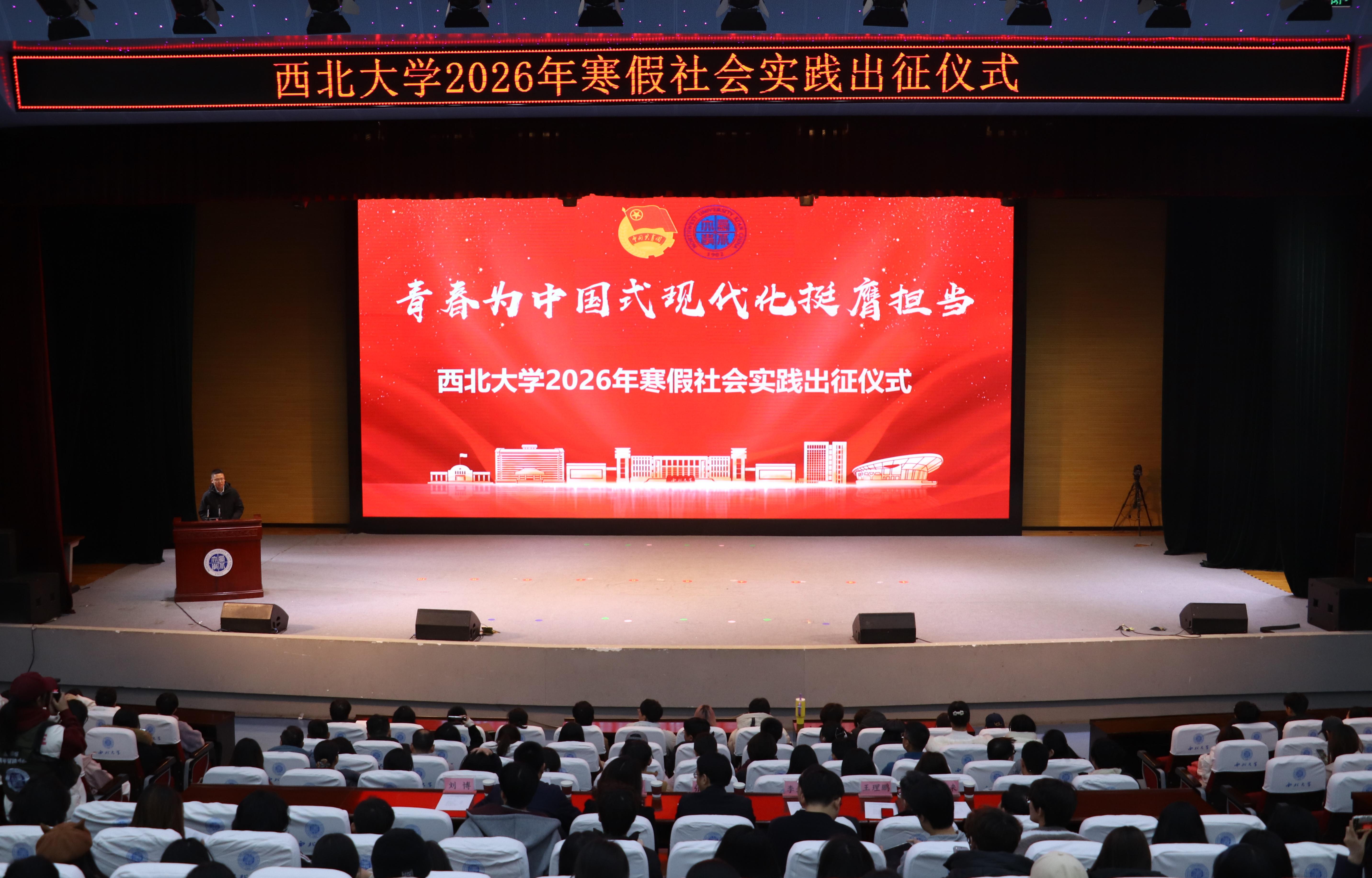 1月14日下午,金沙官网2026年寒假社会实践出征仪式在长安校区举行。校党委副书记张远军,相关单位负责人,各院系学生工作负责人、团委书记、专职团干部及寒假社会实践各团队学生代表齐聚现场,共同见证这一青春时刻。仪式由校团委书记刘博主持。