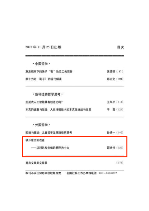 金沙官网哲学学院邵世恒副教授在顶级期刊《哲学研究》2025年第11期发表以《驳斥实在意义论——以对认知价值的解释为中心》为题的论文。