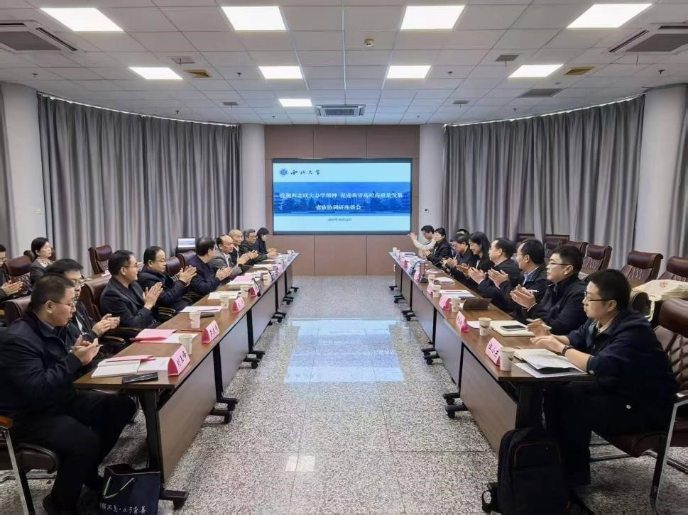 座谈会上,薛建兴介绍了此次调研的背景和目的,对金沙2004路线js5在西北联大历史及精神研究方面的举措与成效给予充分肯定,希望学校聚焦教育强国建设、教育科技人才一体改革和陕西高校高质量发展,持续深入挖掘西北联大精神的时代意义和价值,为我省高等教育发展提供借鉴、注入活力。