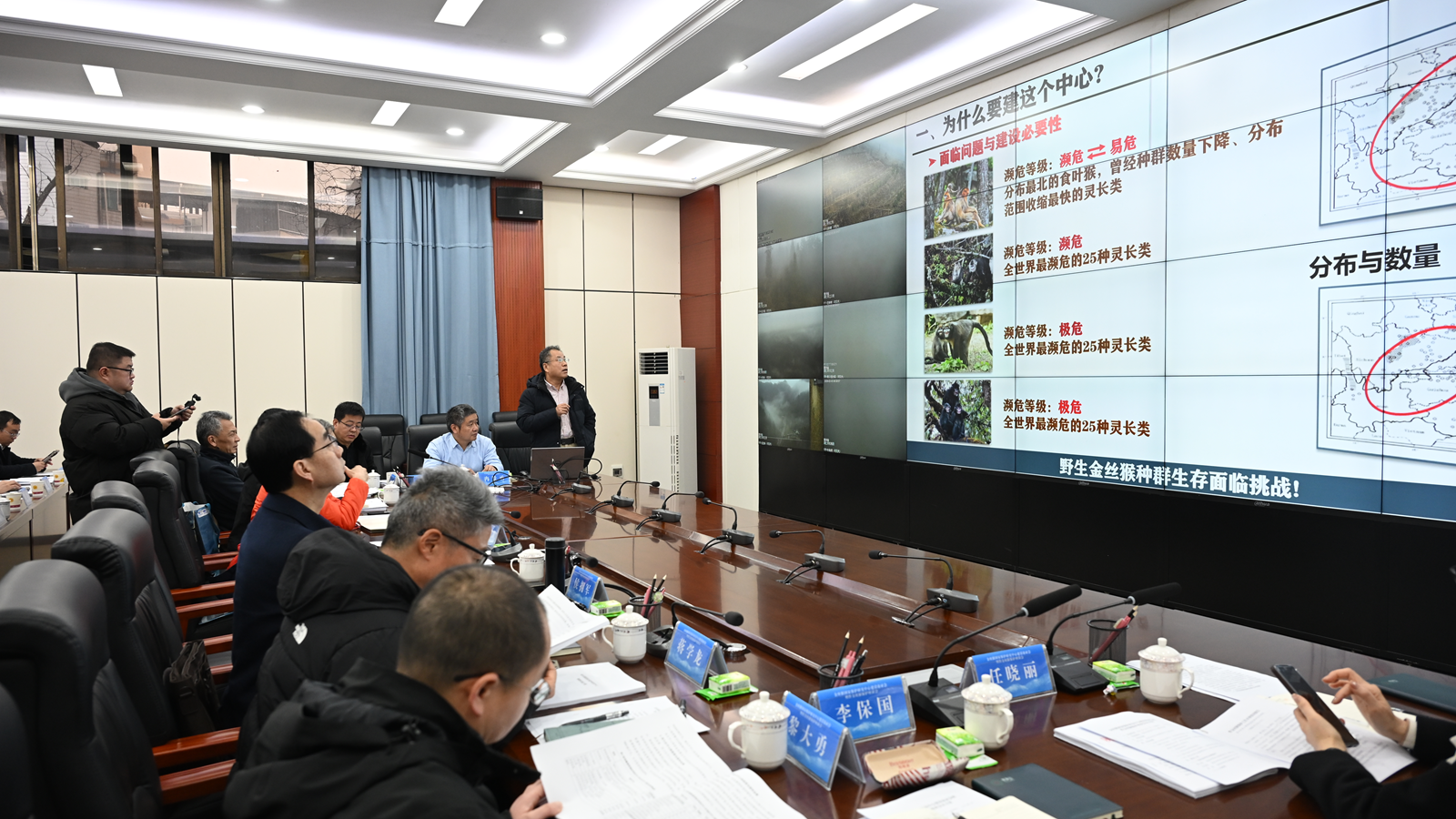 2月5日,金丝猴国家保护研究中心(以下简称中心)设立方案专家论证会议在贵州梵净山国家级自然保护区管理局召开。论证会由国家林业和草原局野生动物保护监测中心副主任郭立新主持。专家组由中国科学院动物研究所、中国科学院昆明动物研究所、贵州师范大学、西华师范大学、陕西省动物研究所等单位专家组成,中国科学院院士魏辅文研究员担任专家组组长。金沙官网作为中心设立方案牵头起草单位受邀参会。国家林草局、贵州省林业局、贵州省林业科学研究院相关领导及专家、金沙官网科技处、生命科学学院代表参加会议。