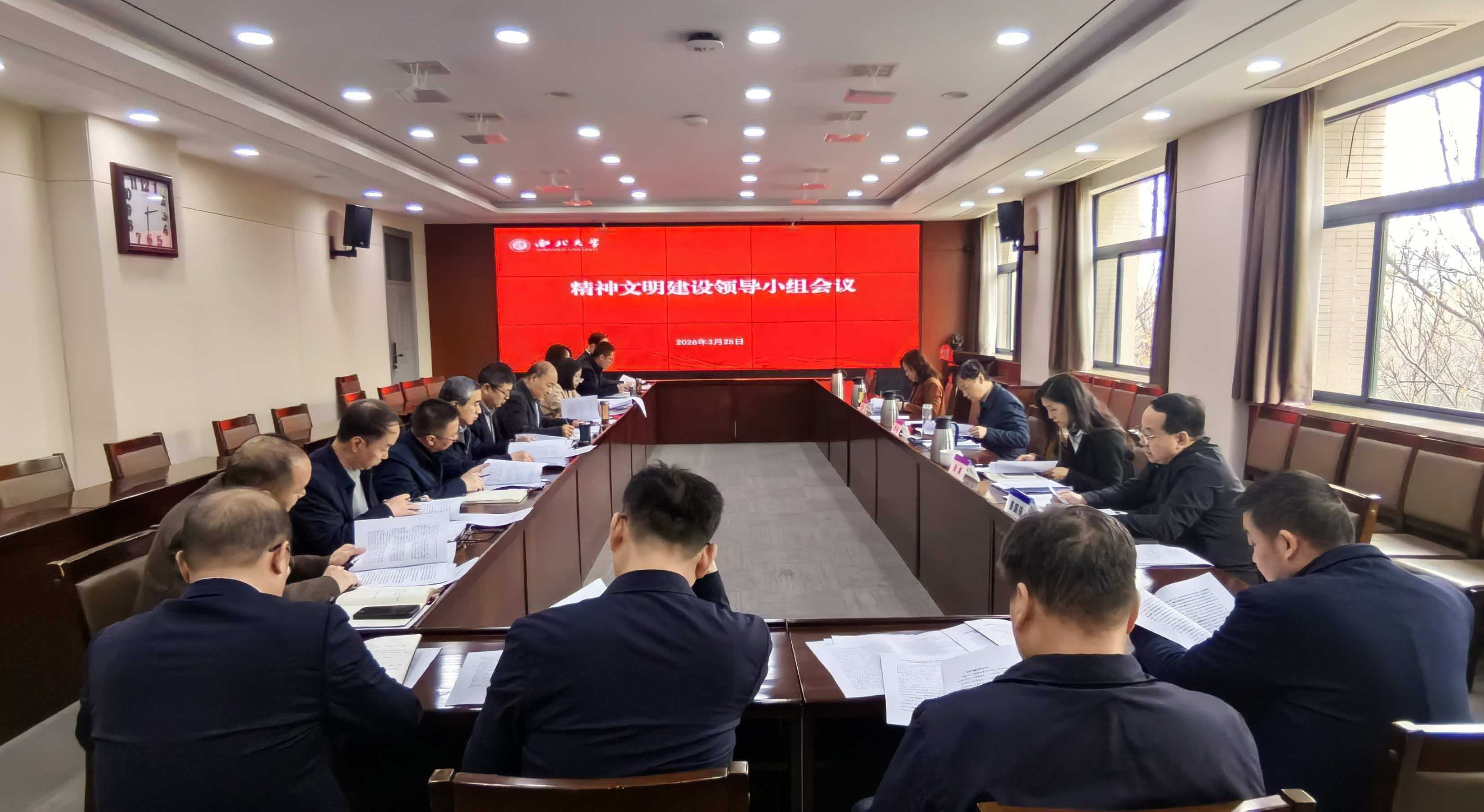 会议对2025年学校精神文明建设工作进行了总结回顾,确定了2025年学校精神文明建设工作先进集体、机关文明处室和文明服务窗口拟表彰名单,对2026年工作进行了安排部署。与会人员讨论了学校《2026年精神文明建设和宣传思想文化工作任务书》内容。