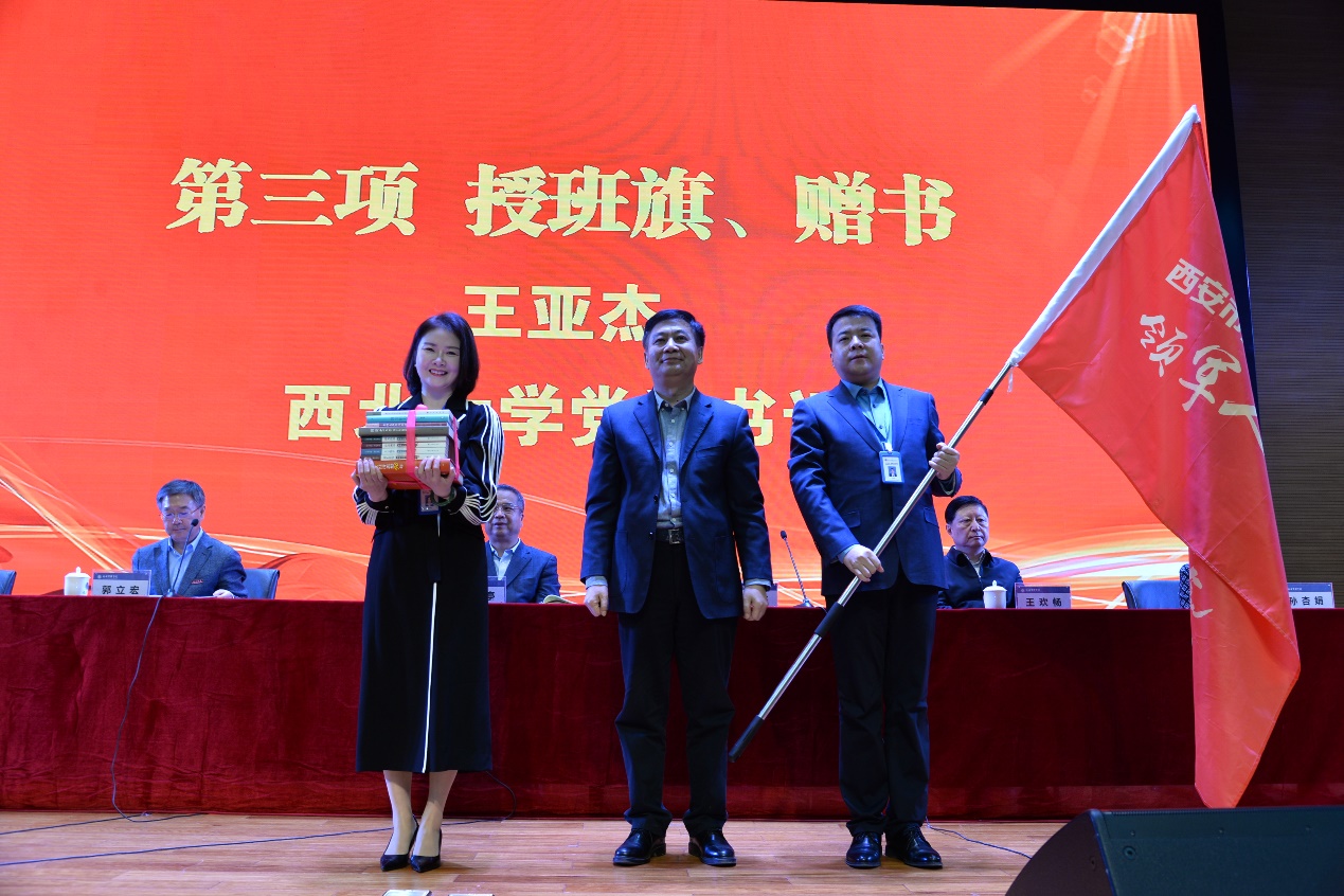 校党委书记王亚杰代表学校为第一期研修班授旗、赠书