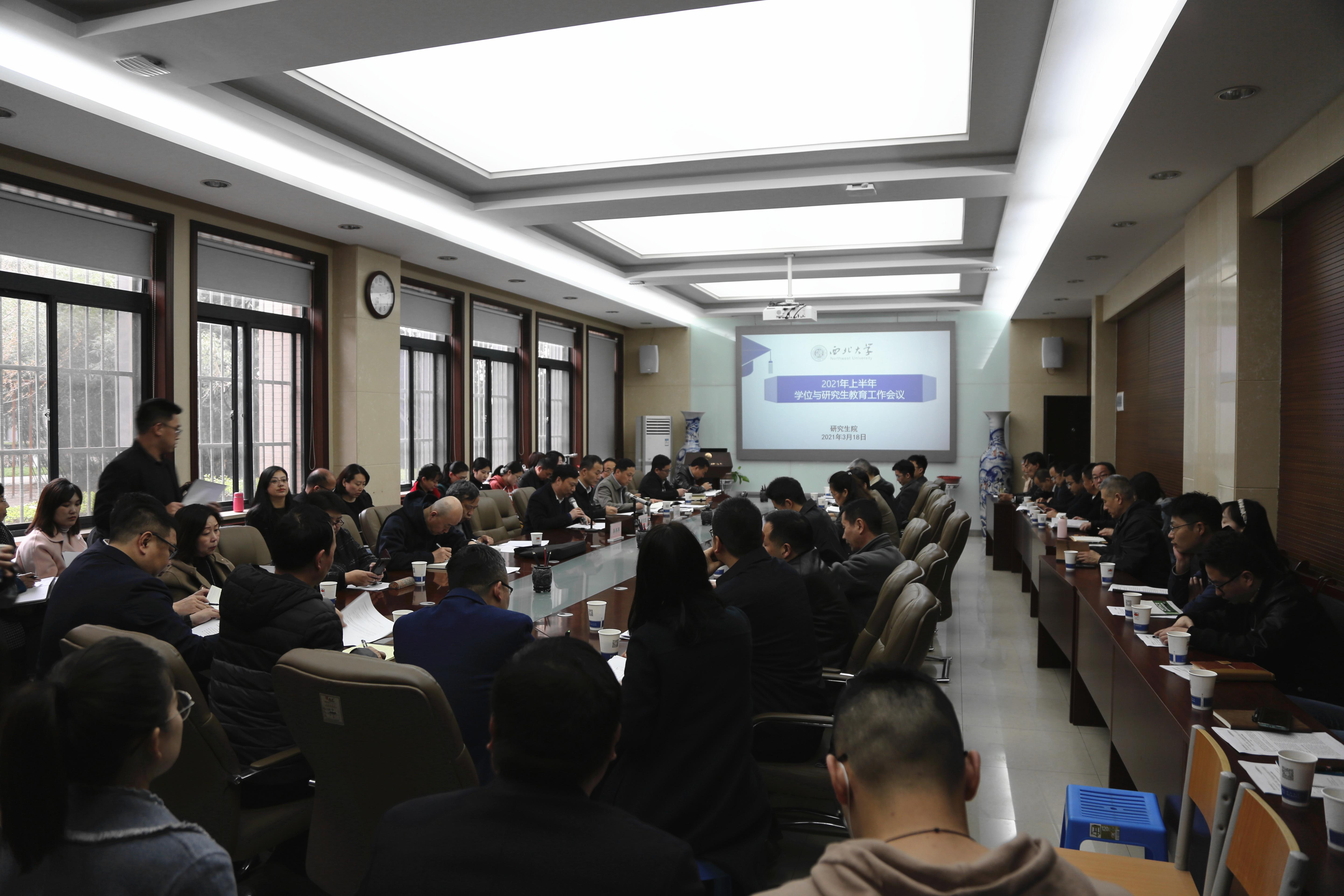 3月18日,金沙官网在长安校区召开2021年上半年学位与研究生教育工作安排会。校党委副书记吕建荣,校党委副书记、纪委书记、省监委驻金沙2004路线js5监察专员李邦邦,研究生教育督导组负责人,研究生院(部)负责人,各院(系)党委书记、主管研究生工作负责人和研究生秘书参加会议。会议由校党委常委、副校长赖绍聪主持。