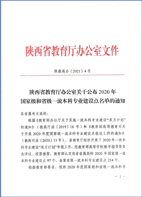 2017年,陕西省教育厅出台《关于建设“一流大学、一流学科,一流学院、一流专业”的实施方案》,率先探索一流专业建设路径及模式,遴选设立了200个一流专业建设项目和500个一流专业培育项目。