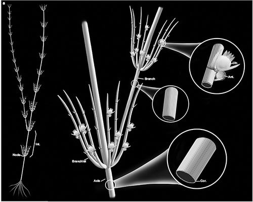 此外,团队还发现了稀少的可能是覆盖藏卵器的外壳化石,它们的叶状体和现生轮藻非常接近,表明轮藻叶状体演化非常保守。同时,由于其皮层细胞更多,缺乏复杂的外壳和钙化藏卵器等特征,被认为是轮藻纲的基干类群。