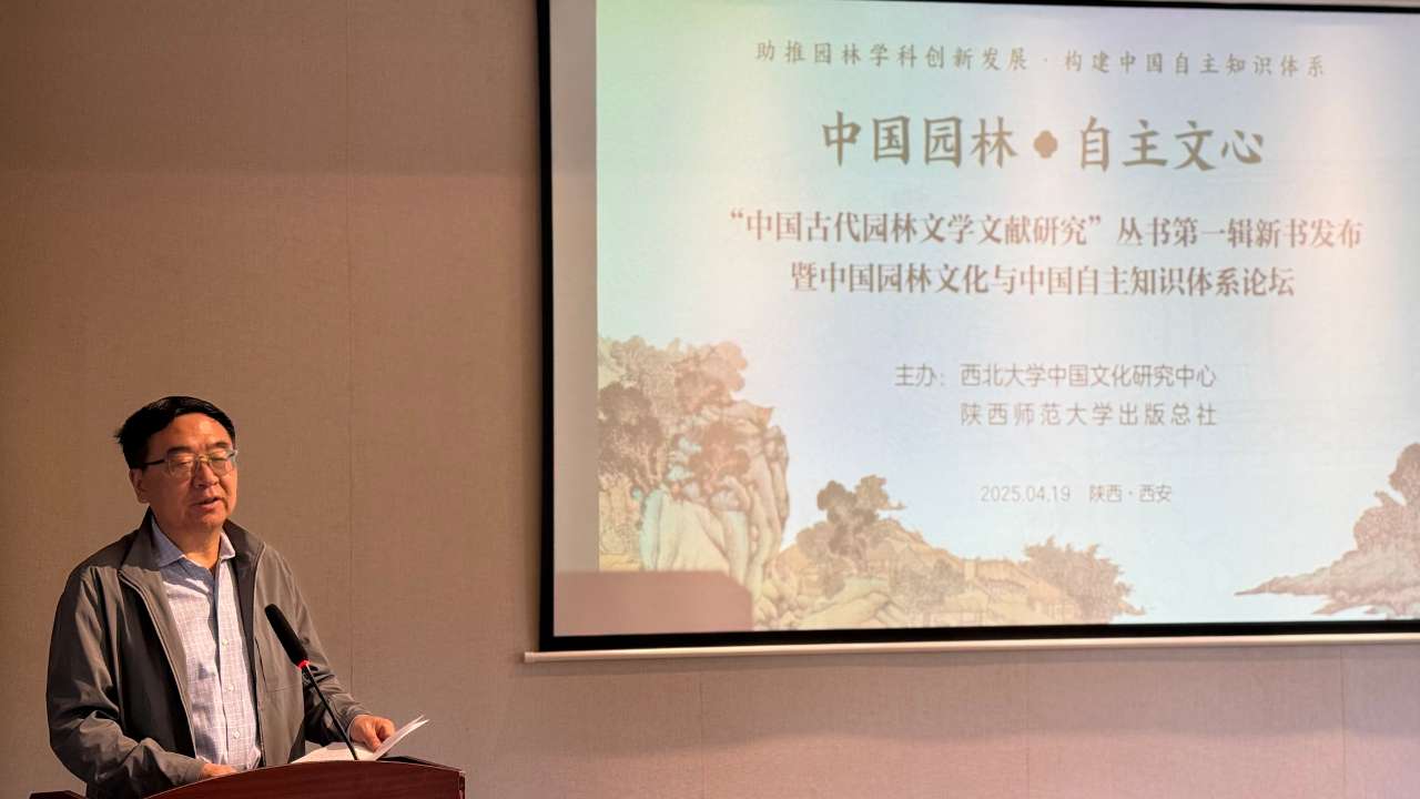 本报讯(记者 王洪波)4月19日,“中国古代园林文学文献研究丛书”第一辑新书发布会暨中国园林文化与中国自主知识体系论坛在西安举行。该丛书是金沙2004路线js5中国文化研究中心主任、文学院教授李浩主持的国家社科基金重大项目“中国古代园林文学文献整理与研究”的阶段性成果。记者从会上获悉,“中国古代园林文学文献整理与研究”项目将首次对中国古代园林文学文献进行全面、系统的集成式整理,并做专题性研究,从而为古典园林研究和古代文学研究开掘新的学术增长点,助力中国园林文化的阐释系统、自主知识体系的构建。