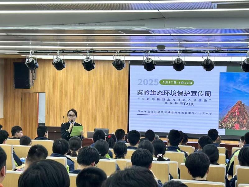 今年3月17日至23日是西安市第十二个秦岭生态环境保护宣传周。3月19日,西安市生态环境局新城分局工作人员走进西安市第八十三中学,开展了一场别开生面的“秦岭珍稀濒危与外来入侵植物”环保科普talk活动。
