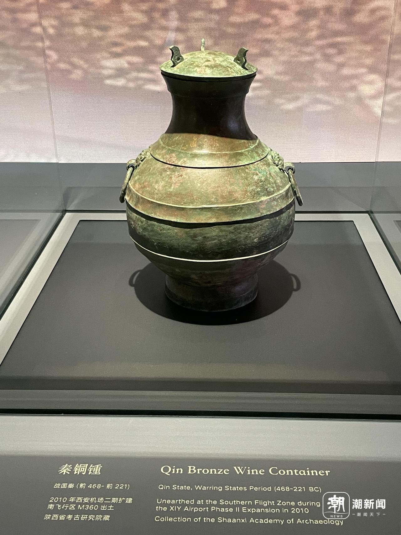 “第一件展品是一件青铜器——秦铜锺。这可不是用来敲的‘钟’,这是盛酒的容器,2010年西安机场二期扩建时出土。”罗巍介绍,展示在机场建设时考古发掘出土的文物,是这个博物馆最大的特色。