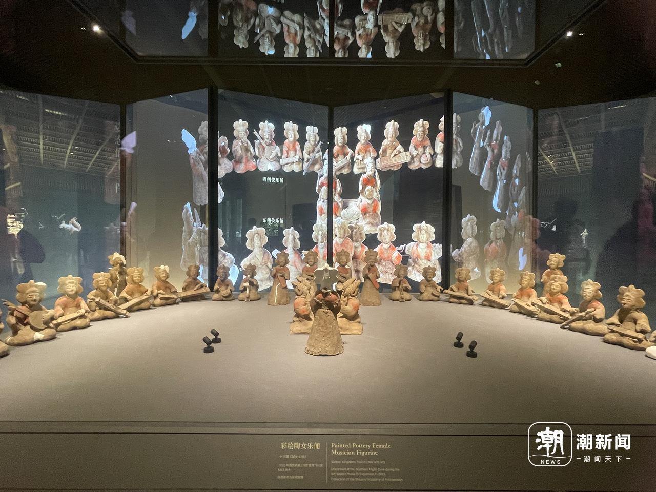 彩绘陶女乐俑展示了古代女子乐团演奏时的场景。潮新闻记者 陶韬 摄