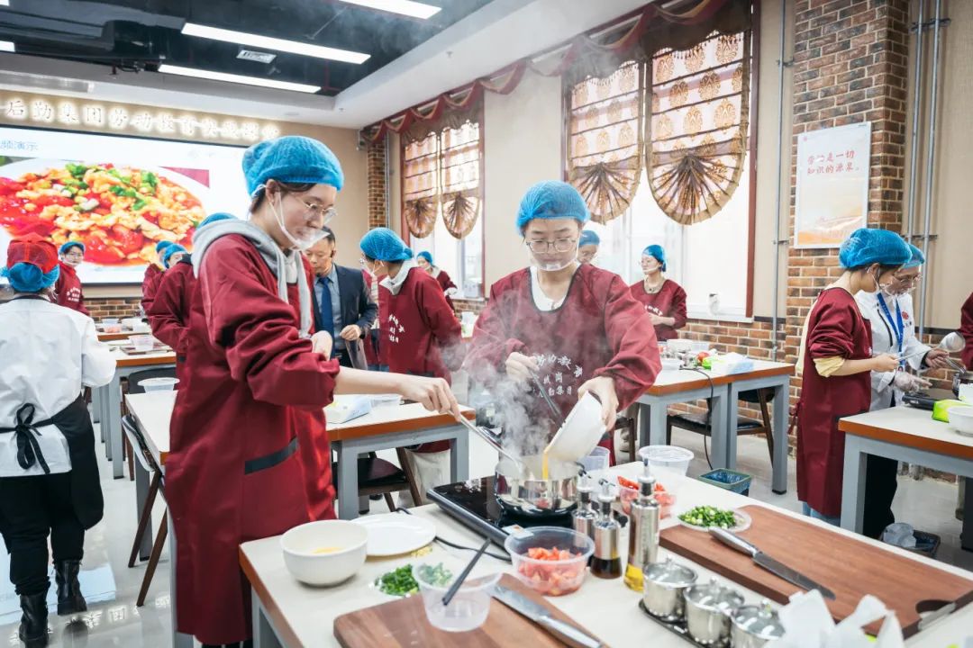 “虽然这只是一道简单的家常菜,但是其中的讲究可不少。”在老师和食堂工作人员的指导下,同学们点火、倒油,加入葱花炝锅,加入打好的鸡蛋和切好的西红柿,翻炒、调味,一套行云流水的动作下来,一盘色香味俱全的西红柿炒鸡蛋新鲜出锅。