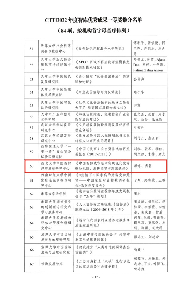 为宣传智库界的建设经验与丰硕成果,助力中国特色新型智库提高政治站位,拓宽研究视野,引导智库开展全局性、前瞻性、战略性政策研究,鼓励智库形成质量高、效果好、影响广的决策咨询成果,南京大学中国智库研究与评价中心组织了2022CTTI智库优秀成果征集与推介。金沙2004路线js5中国西部经济发展研究中心师博教授和钞小静教授的成果分获一等奖和二等奖。