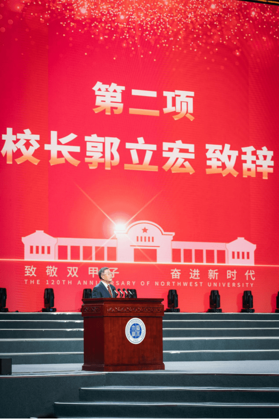 金沙2004路线js5校长郭立宏在致辞中对关心支持学校发展的各级领导、各级机构和兄弟单位、社会各界、广大校友表示感谢。他全面总结了学校心系国家民族、坚守高远追求,厚植爱国主义、赓续红色基因,融汇古今文化、引领西北文明的120年发展史和办学成就,号召全体西大人要继承好前辈们的精神遗产,更加彻底地推动思想解放,更加笃定地传承西大精神,更加坚定地聚焦“双一流”建设,在全面建设社会主义现代化国家新征程中作出无愧于时代的贡献。