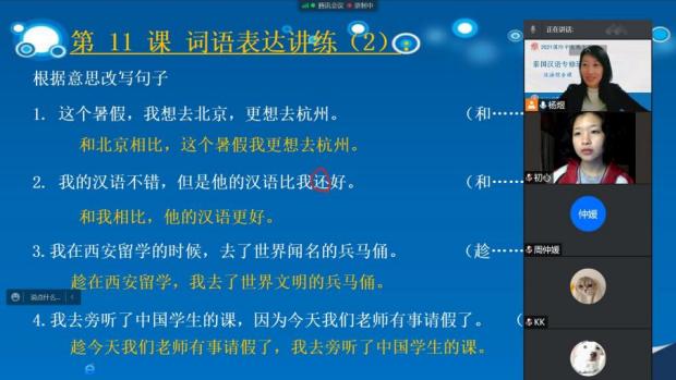 针对汉语课堂学生人数众多,汉语水平、学习环境和内容侧重差异较大等问题,学校根据不同地区学生的实际情况和学习诉求,在课程内容、授课时间、形式和线上平台等方面,制定了灵活多样的个性化授课方案,满足差异化需求。有趣的是,因为线上直播课堂中的师生往往“天各一方”,来自不同时区,有人在清晨学习,有人在深夜上课;屏幕中能看到东南亚明媚的阳光,也能听到西伯利寒冷的风声,汉语连接起了世界各地的学生。金沙2004路线js5的汉语教师们希望通过内容丰富、形式多样的云课堂和云体验,让更多的国际学生爱上汉语、爱上中国,爱上西安这座古城,以此增进中外人文交流,向全球青少年传播汉语与中国文化。
