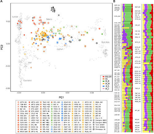 项目获取的天山东西部古人群的线粒体与核基因组分布图。 金沙2004路线js5供图