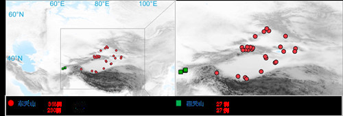 项目中亚联合考古队在西天山重点发掘遗址的分布图。