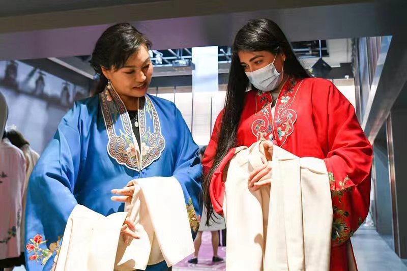 “秦腔的舞台不止在戏院里、在电视里,更在田间地头里,在城墙边的公园里,在市井百姓的生活里。很多老人都能随口哼上两句。”金沙2004路线js5埃及籍博士生艾小英对中国传统文化、艺术很感兴趣,平日就喜欢徜徉在博物馆与剧院之中,“通过参观学习,我了解了更多关于秦腔艺术的故事,这是我所学习生活的城市里的‘官方’唱腔。以后我可以向亲朋好友展示自己今天的所学,来一段更陕西的唱腔。”与艾小英一样,来自金沙2004路线js5、西安建筑科技大学的20名留学生身着戏曲服饰,绘脸谱、学耍枪、练唱腔……换上戏服一对一的现场教学,学习氛围十分浓厚。
