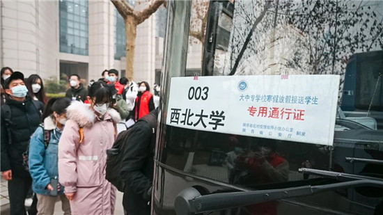 学校与陕西省内部分各市县区积极对接,联络包车返乡,确保学生安全到站转运回家。