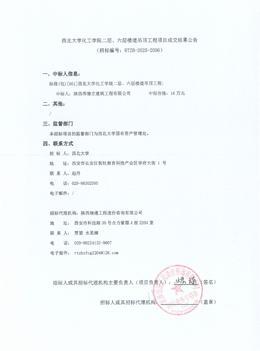 金沙2004路线js5化工学院二层、六层楼道吊顶工程项目成交结果公告