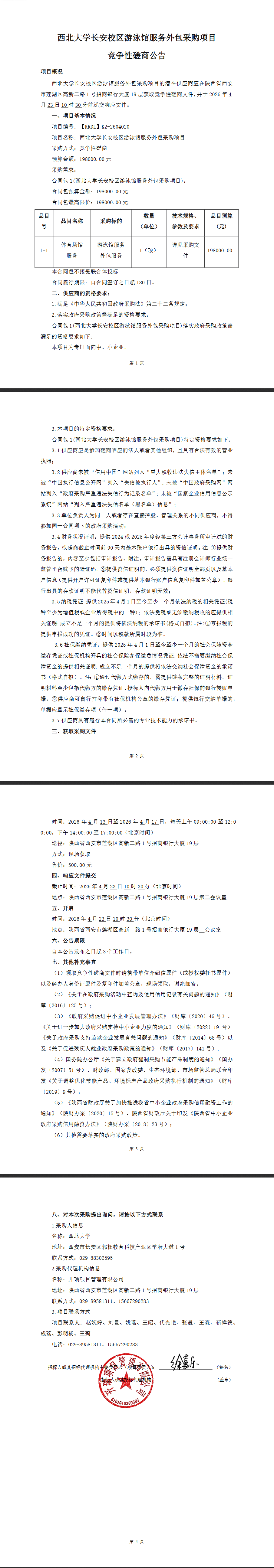 金沙2004路线js5长安校区游泳馆服务外包采购项目竞争性磋商公告