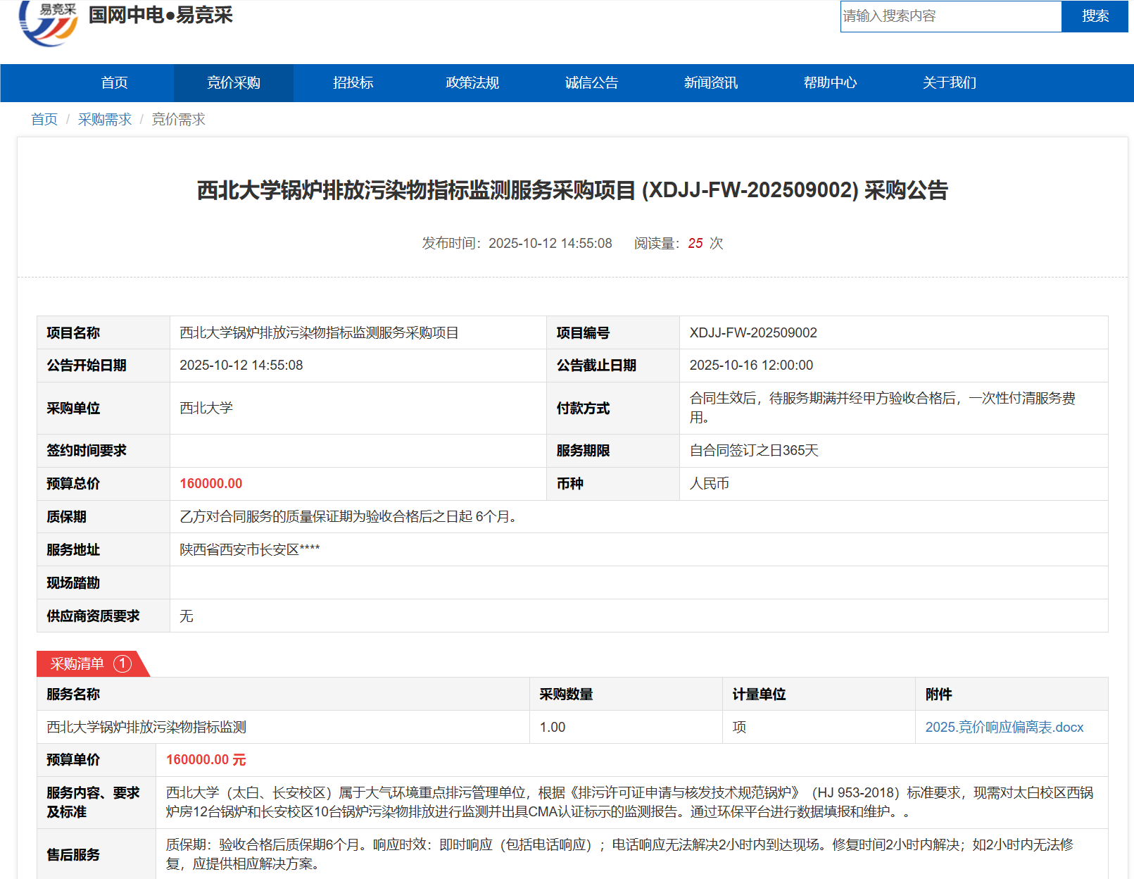 金沙2004路线js5锅炉排放污染物指标监测服务采购项目(XDJJ-FW-202509002)竞价采购公告