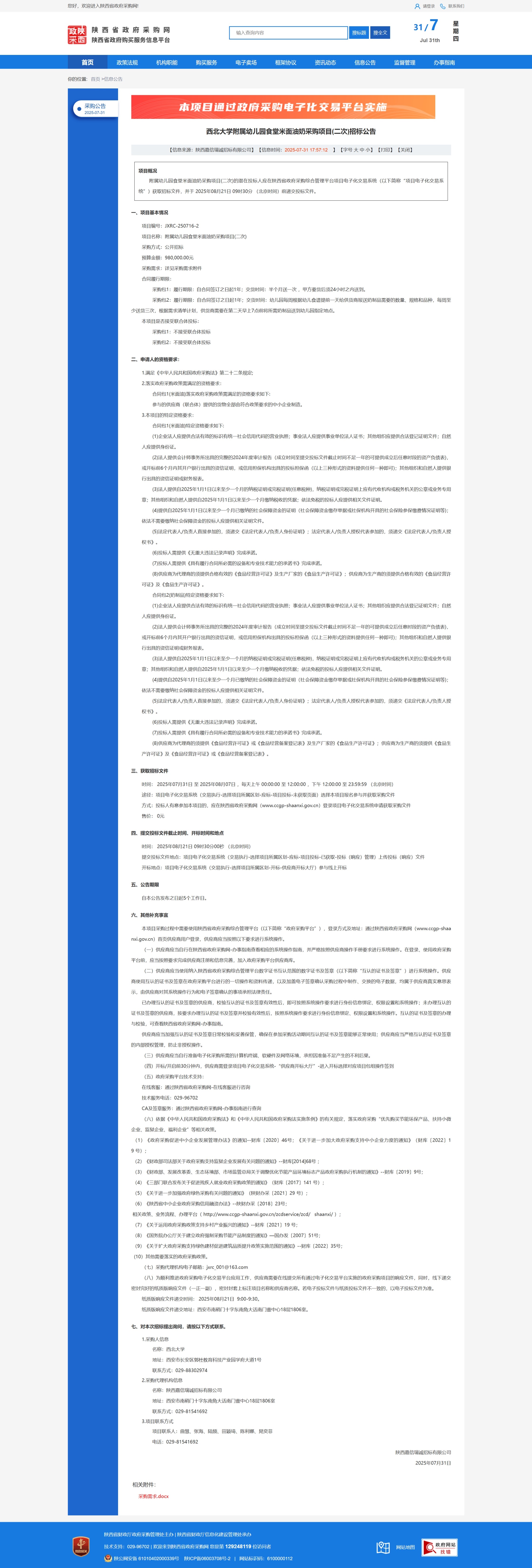 原公告链接:https://www.ccgp-shaanxi.gov.cn/freecms/site/shaanxi/ggxx/info/2025/8a69c4d4985e3e5601985fe2fab2305e.html?noticeType=001011¬iceId=c51d4796-6df6-11f0-8063-08c0eb20c666