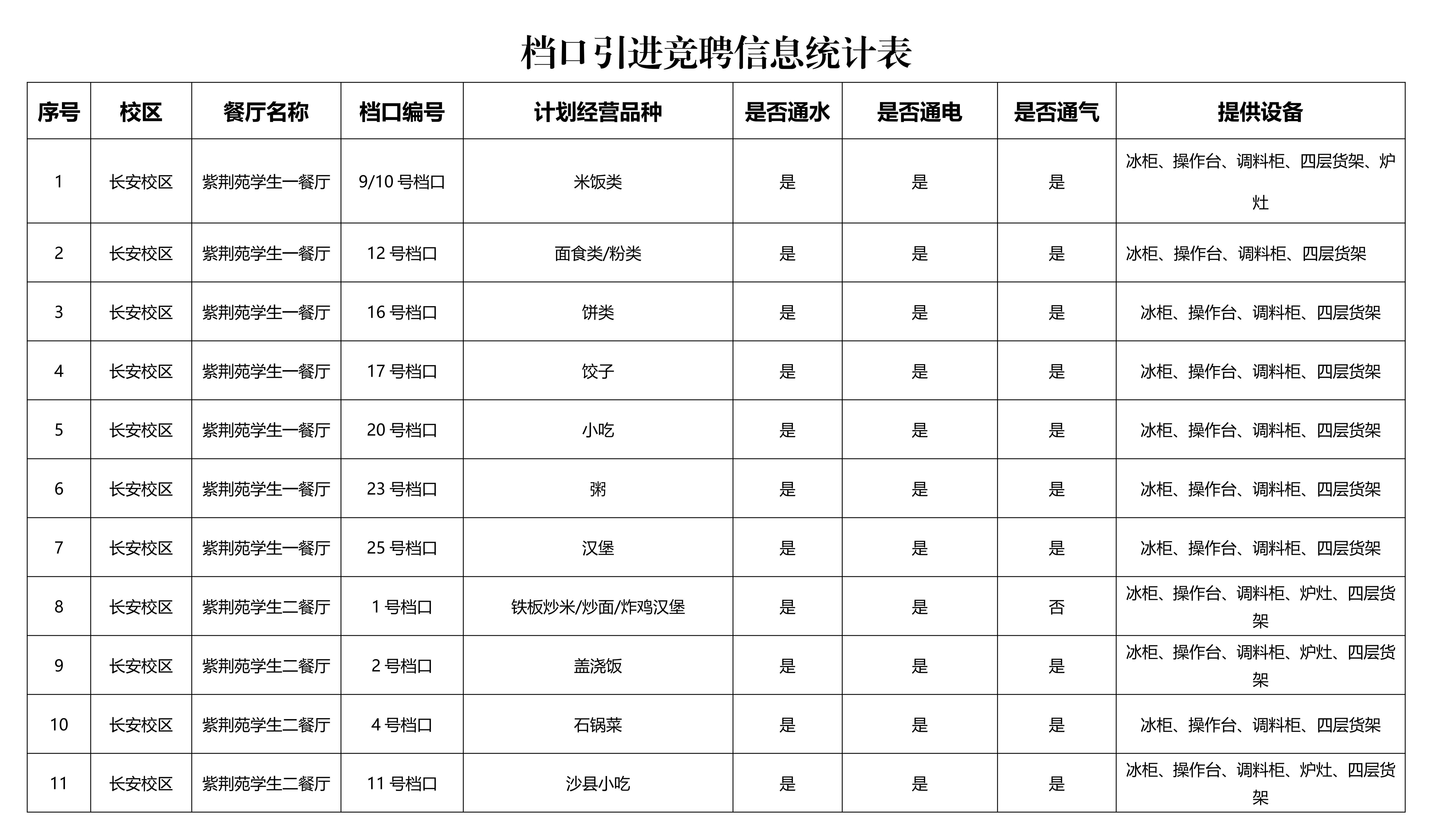 项目简介:本次采用公开遴选方式共引进45个档口,部分提供设备,相关信息详见下表。