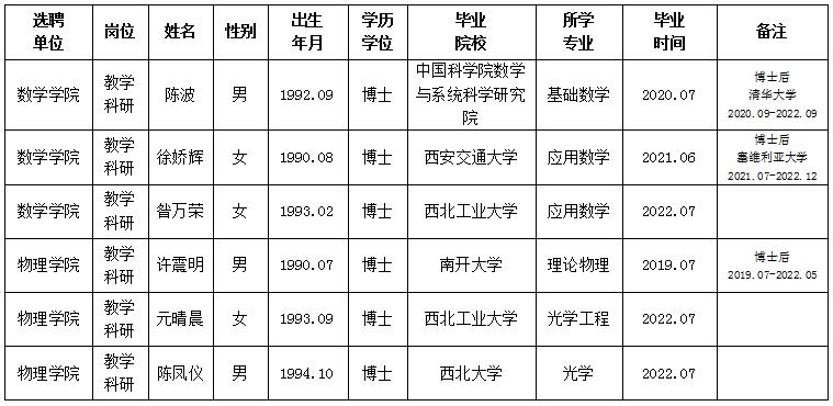 经用人单位推荐,人力资源部审查,学校教学督导及院系相关专家考核,金沙官网拟确定下列人员来校工作。本着公平、公正、公开的原则,现将本次拟选聘人员基本情况公示如下: