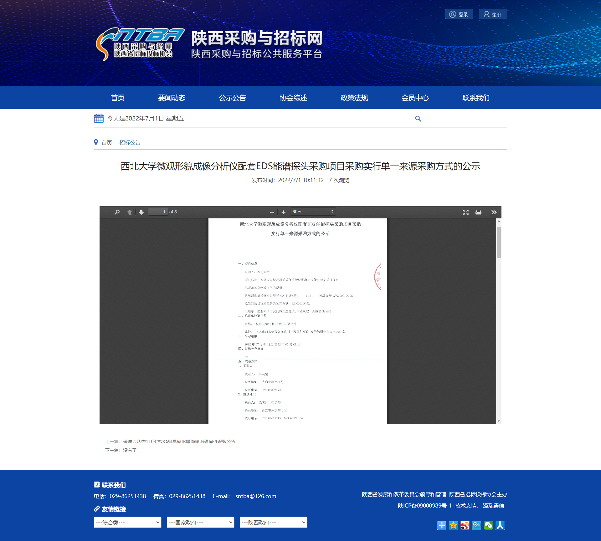 金沙2004路线js5微观形貌成像分析仪配套EDS能谱探头采购项目采购实行单一来源采购方式的公示 作者: 编辑:采购与招标办公室 时间:2022-07-01 原公告链接:http://www.sntba.com/website/gg_show.aspx?id=216192