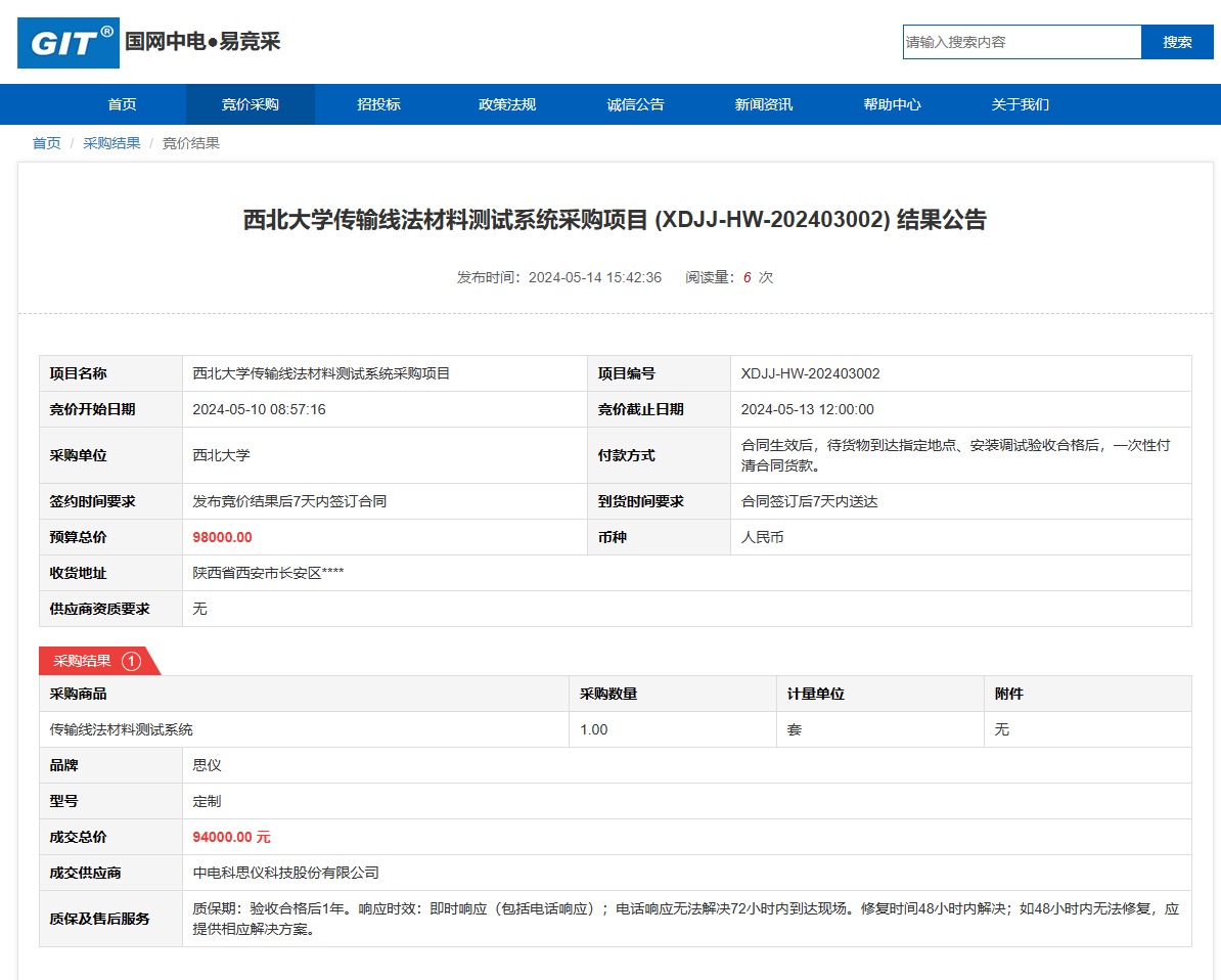 金沙2004路线js5传输线法材料测试系统采购项目 (XDJJ-HW-202403002) 竞价结果公告 作者: 编辑: 时间:2024-05-14 原公告链接:https://www.ejingcai.com.cn/site/bidding/detail/10184