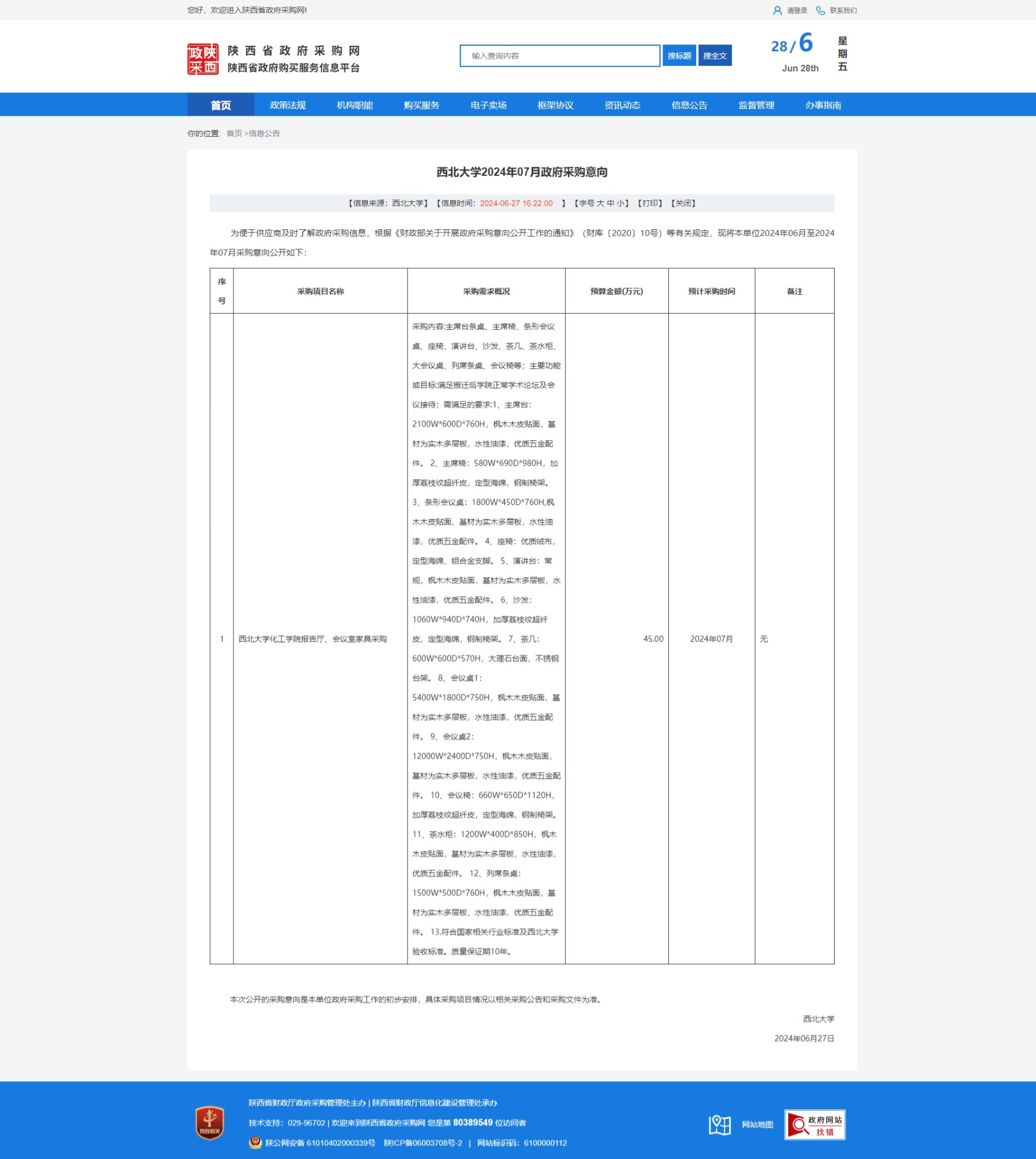 金沙2004路线js52024年07月政府采购意向 作者: 编辑:采购与招标办公室 时间:2024-06-28 原公告链接:https://www.ccgp-shaanxi.gov.cn/freecms/site/shaanxi/ggxx/info/2024/8a69c56f905696ce019058c8634c19ef.html?noticeType=59¬iceId=ff818b4c-3460-11ef-b8b6-08c0eb20c666