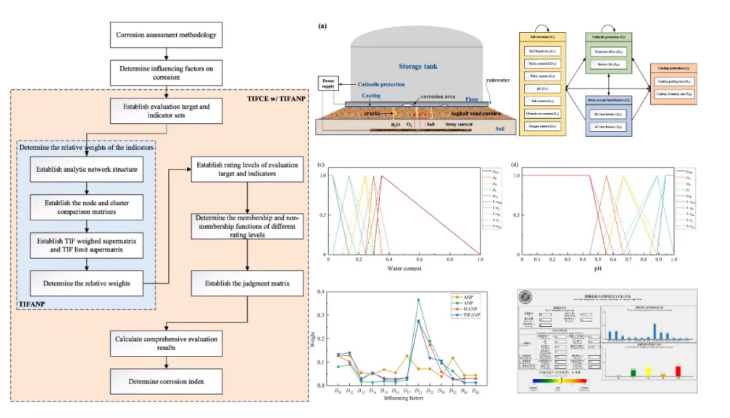 针对埋地基础工业设施面临的复杂腐蚀检测与评估难题,金沙2004路线js5化工学院科研团队将三角直觉模糊网络分析过程(TIFANP)与三角直觉模糊综合评价(TIFCE)相融合,构建了一种多层次、多指标的腐蚀评估方法,该方法能准确刻画腐蚀多元影响因素交互作用及其不确定性问题。将其应用于原油储罐底板的外腐蚀评估,评价结果与开罐检验结果相符。研究结果可为埋地基础工业设施安全运维与高效防腐管理提供科学依据与决策支持。