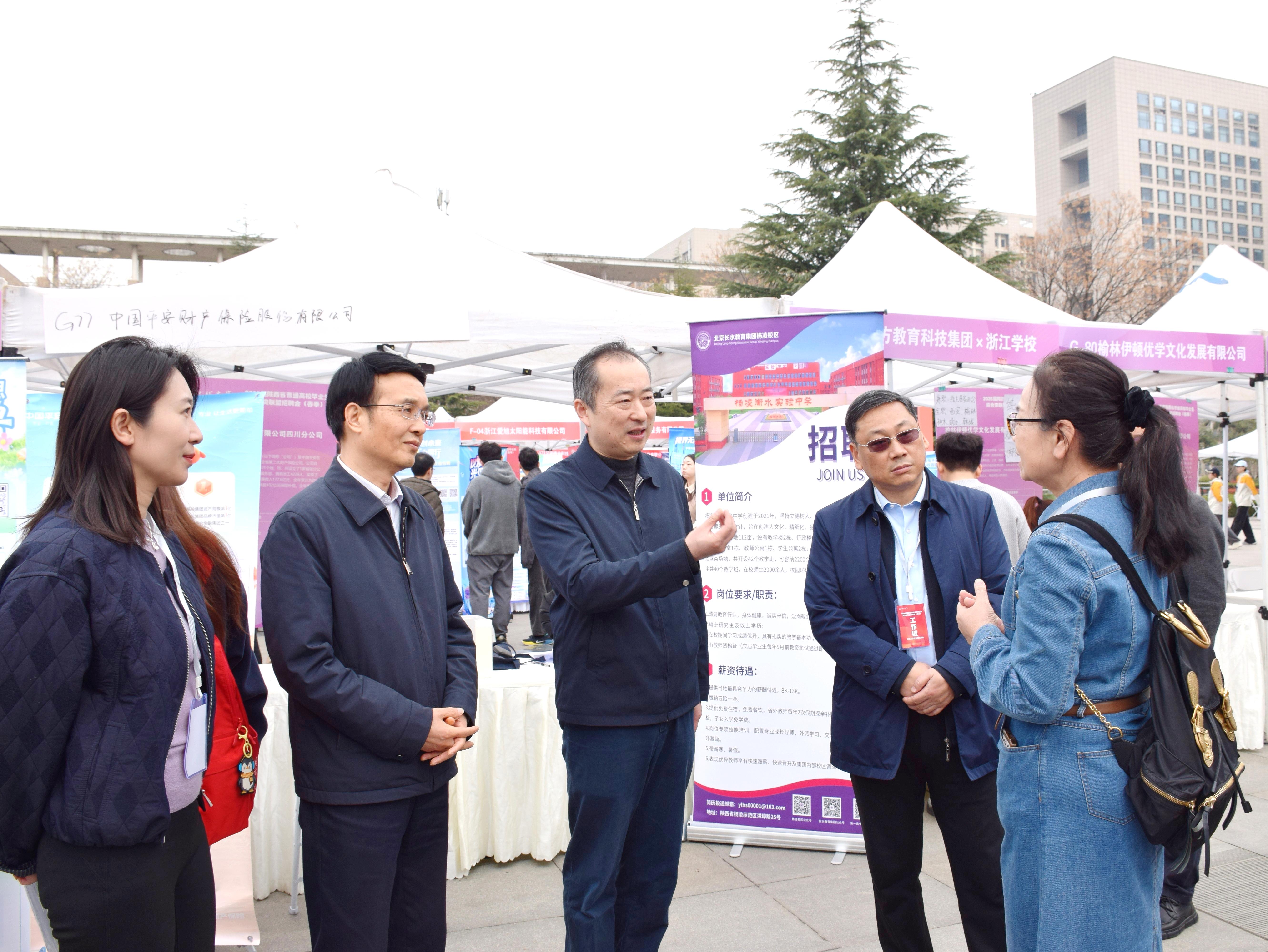 陕西省学生就业与留学服务中心主任相勇、校党委副书记张远军现场走访重点用人单位,并同用人单位和毕业生互动交流,详细了解企业招聘和毕业生求职情况。学校相关单位负责人和各院(系)学生工作负责人及全体毕业班辅导员参加活动。