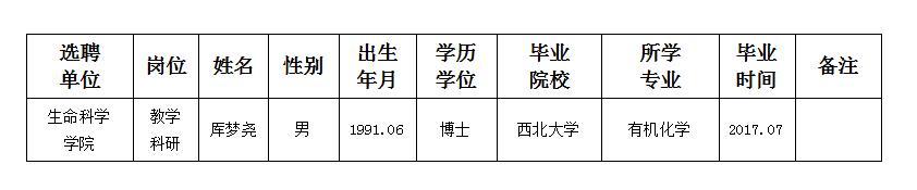 经用人单位推荐,人力资源部审查,学校教学督导及院系相关专家考核,金沙官网拟确定下列人员来校工作。本着公平、公正、公开的原则,现将本次拟选聘人员基本情况公示如下: