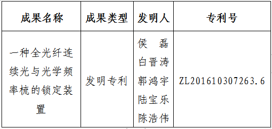 “一种全光纤连续光与光学频率梳的锁定装置”。