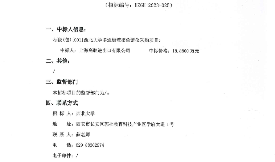 金沙2004路线js5多通道液相色谱仪采购项目中标结果公示 作者: 编辑:采购与招标办公室 时间:2023-07-14 原公告链接:http://bulletin.sntba.com/resultBulletin/2023-07-14/585694.html