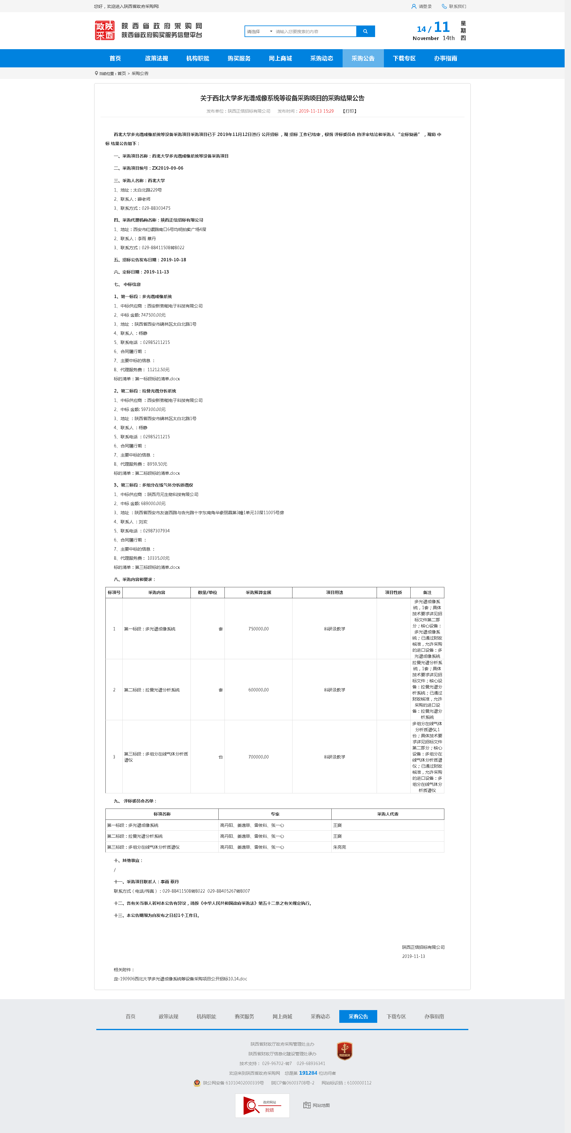 关于金沙2004路线js5多光谱成像系统等设备采购项目的采购结果公告 作者: 编辑: 时间:2019-11-14 17:33 原链接地址:http://www.ccgp-shaanxi.gov.cn/notice/noticeDetail.do?noticeguid=8a85be326e5f44fd016e63a803b823ff