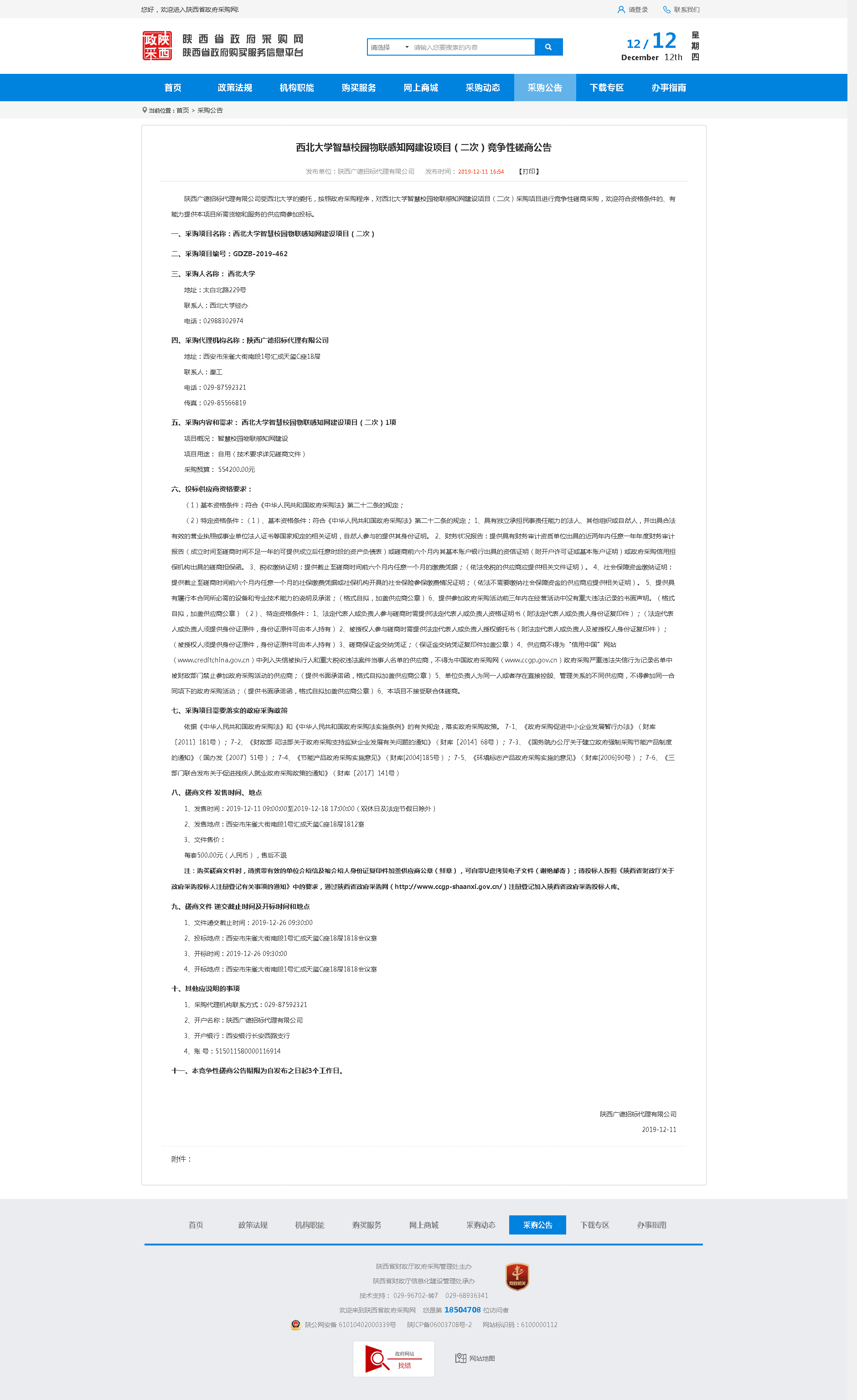 金沙2004路线js5智慧校园物联感知网建设项目(二次)竞争性磋商公告 作者: 编辑: 时间:2019-12-12 08:53 原链接地址:http://www.ccgp-shaanxi.gov.cn/notice/noticeDetail.do?noticeguid=8a85be316edbb0ba016ef424702825f8