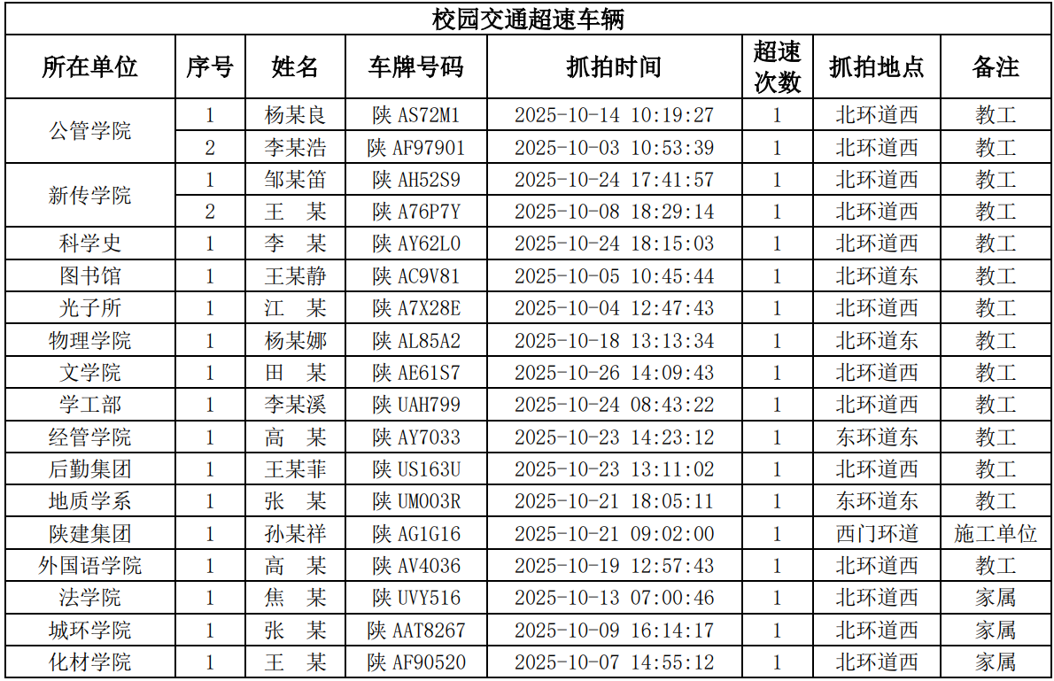 为进一步加强校园交通管理,保障校园交通安全有序,维护学校正常的教学、科研和生活秩序,切实保护师生员工的人身财产安全,根据《金沙2004路线js5校园交通安全管理规定》的相关要求,现将2025年10月校园交通违章车辆予以曝光,具体要求与违章信息如下: